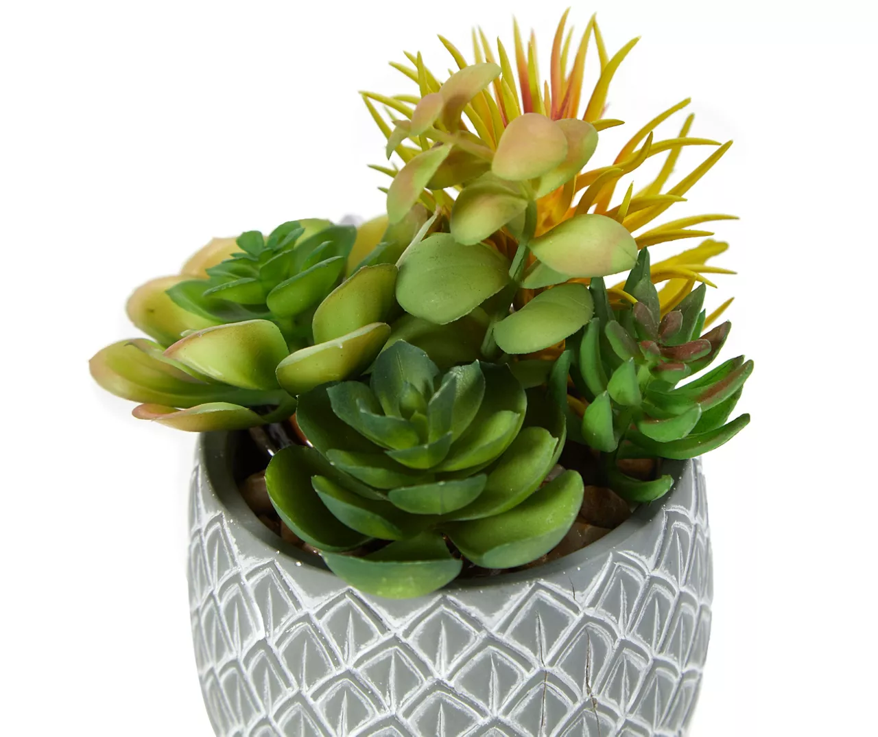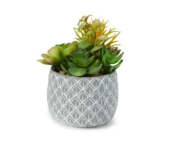 Artificial Succulent Medley In Leaf Carved Cement Pot
