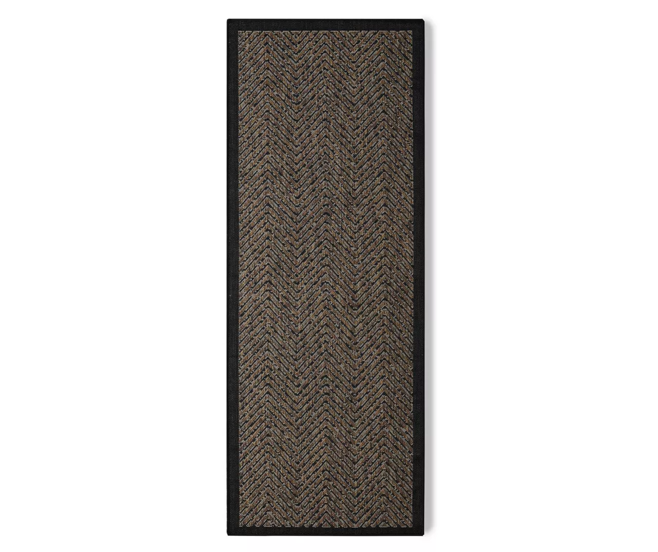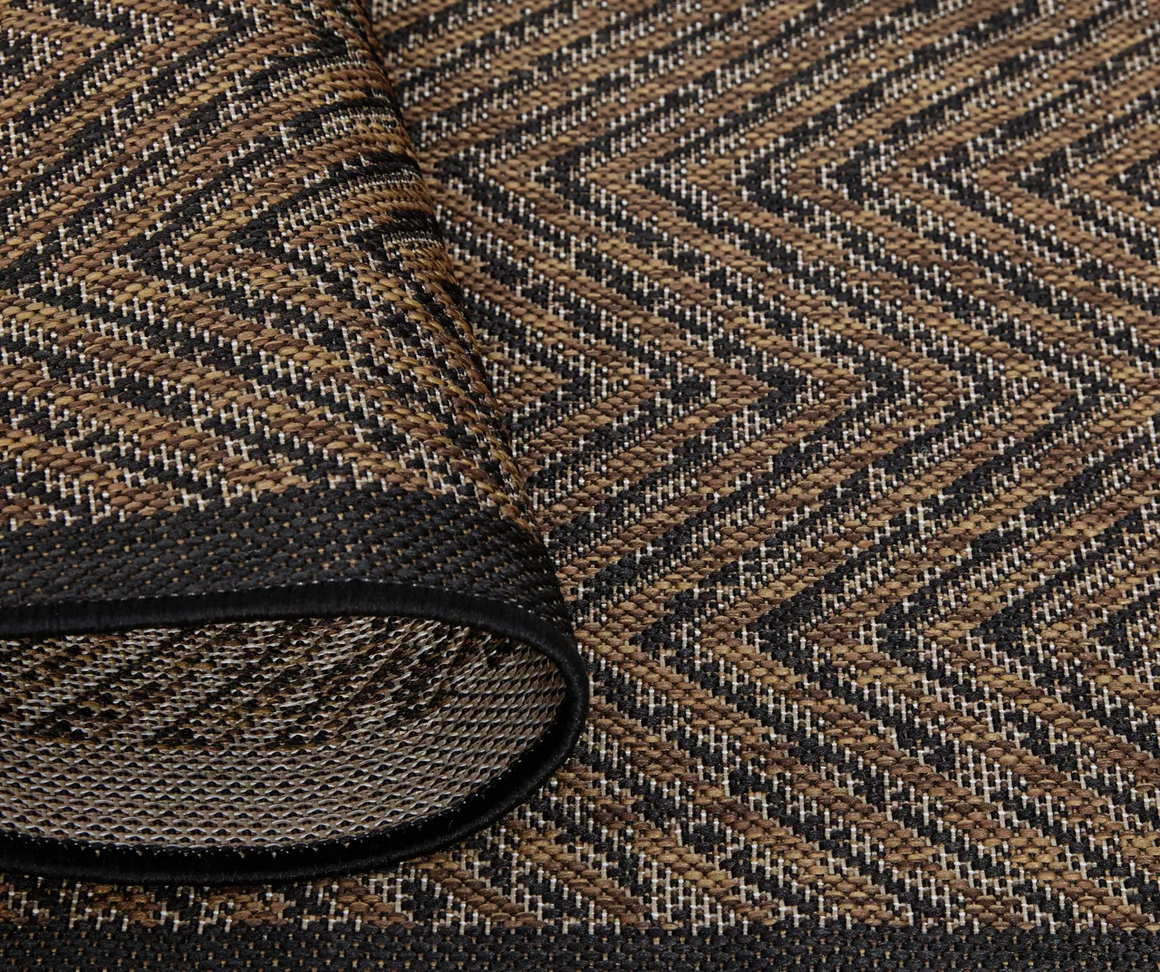 Style your home or patio with the Biscayne textured chevron indoor/outdoor rug. Made in Turkey, this polypropylene area rug features a textured flatweave chevron pattern in a natural hue with a black border, for a classic look. Stain and fade resistant, this indoor/outdoor rug is durable for all seasons and easy to clean.