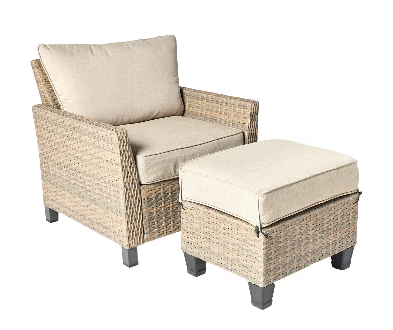 The Yorktown ottoman by Broyhill allows you and guests to cozy up a seat or your feet in your favorite outdoor space! The square profile features a powder-coated galvanize steel frame covered in a beautiful all-weather wicker in a half-round look. Topped with an oversize, deep seating cushion made from fade-resistant Olefin fabric, this ottoman is an excellent companion for your porch, patio or deck.