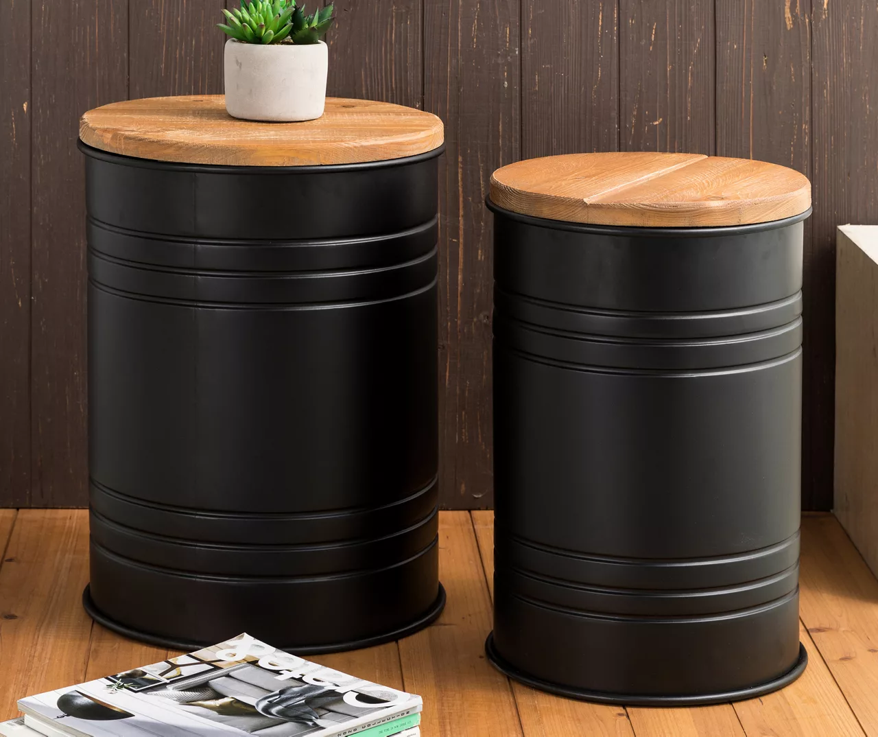 Made from high-density wood and iron, these black barrels double as a side table for display and extra seating for when guests are over. Remove their pine wood tops to reveal a hallow interior for storing blankets, pillows and other home essentials. Place them in the living room, den or bedroom for a touch of rustic, country charm. Water resistant design means they’re ideal for outdoor use too.