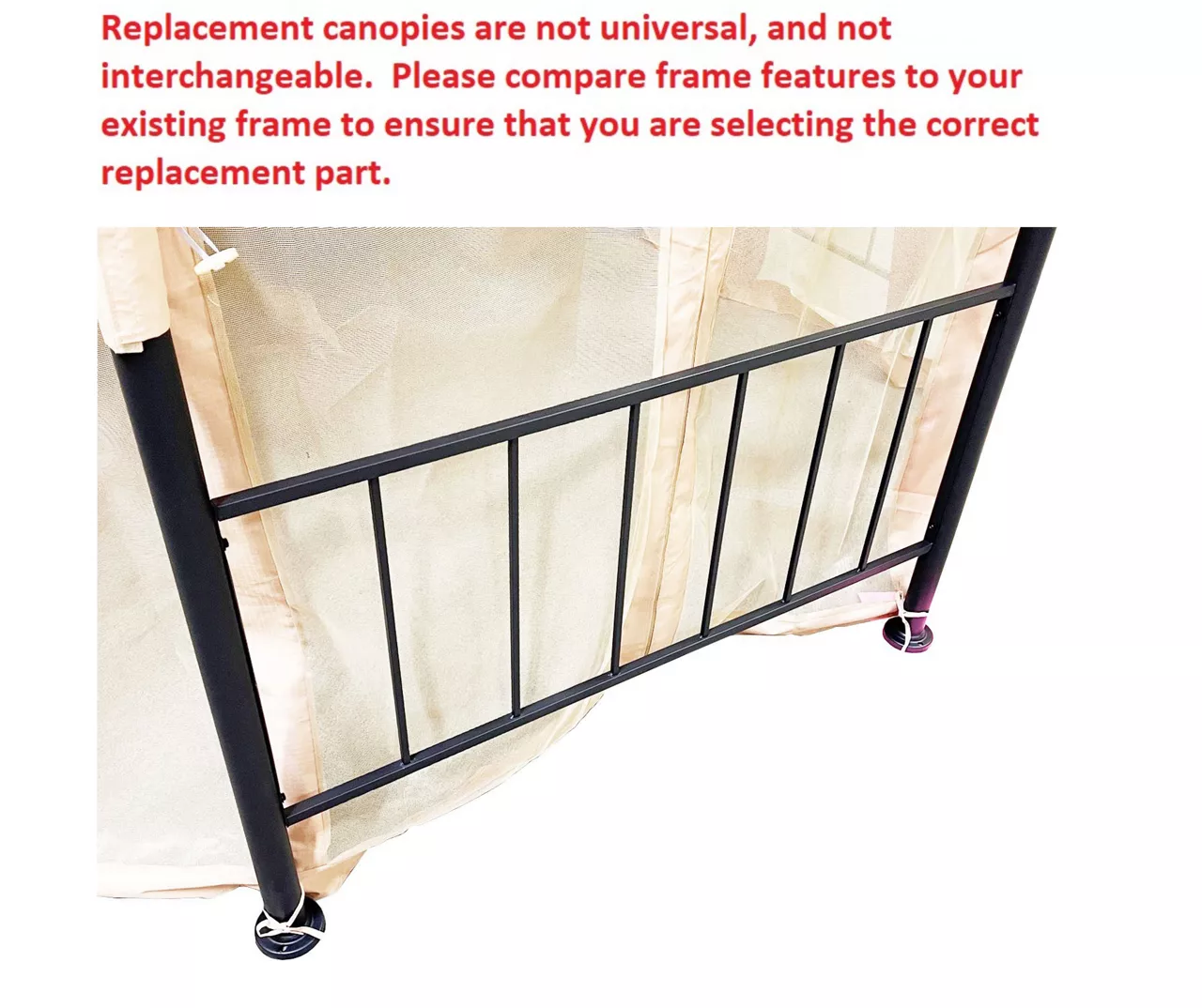 - Replacement canopy top cover only. Other accessories and metal frame parts not included