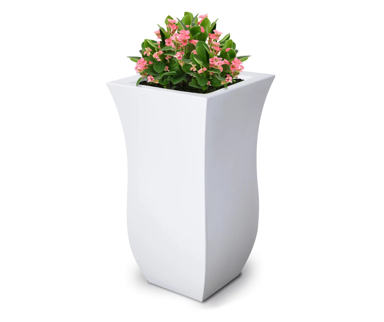 If you are looking to add a little flair to your entrance ways, patios or terraces, then this is the planter for you! The Valencia planter moves away from the hard lines and geometric shapes you’ve come to expect from planters, in favor of soft curves and a tulip shape. The double-wall design is made from 100% high-grade Polyethylene, is weatherproof and has an ultra-tough construction. Finished in a classic white hue, this planter is a great addition to an indoor or outdoor space.