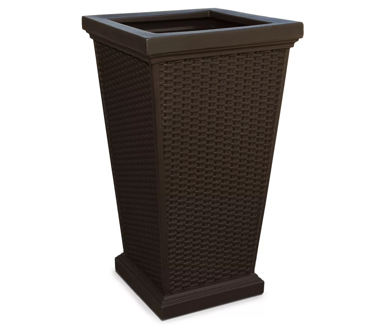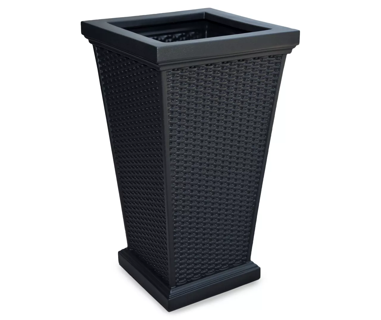 Add the look of wicker weaving without the risk of weather damage with this elegant Wellington white tall planter. Its charming design is perfect for the placement of seasonal flowers or plants. It will nicely adorn your porch, patio or deck for a touch of sophistication.