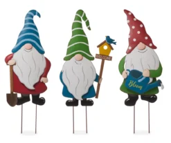 Bring magic and good luck to your growing garden with this set of three gnome-shaped yard stakes With their mix of polka dots, stripes and seed-sowing accessories, they’ll enhance the natural beauty of your flowering shrubs and trees.
