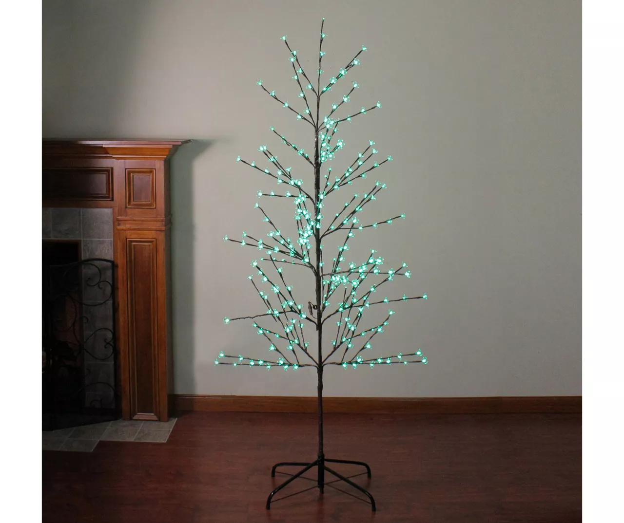 Bring illuminating springtime design to your home with this cherry blossom tree! Glowing from LED mini lights in a rich green hue, each branch features a hand wrapped stem that’s bendable for your decorating needs. It’s perfect for display in a living space or entryway.