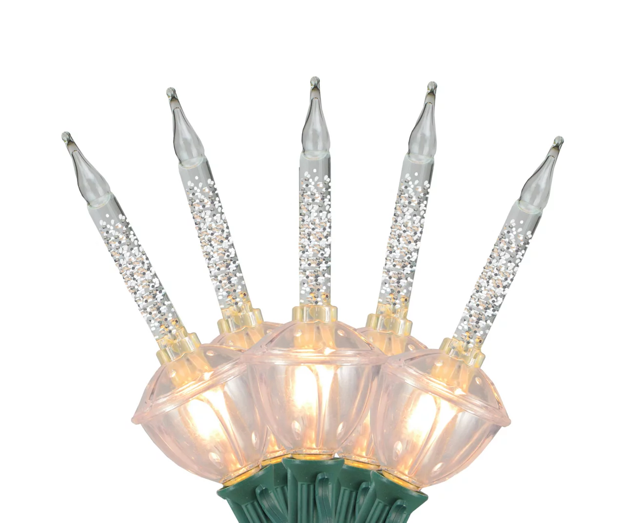 Illuminate your holidays in retro flair using this light set! A series of bubble lights glow in vintage style using silver glitter. They’re a wonderful addition to a wreath, tree or mantel.