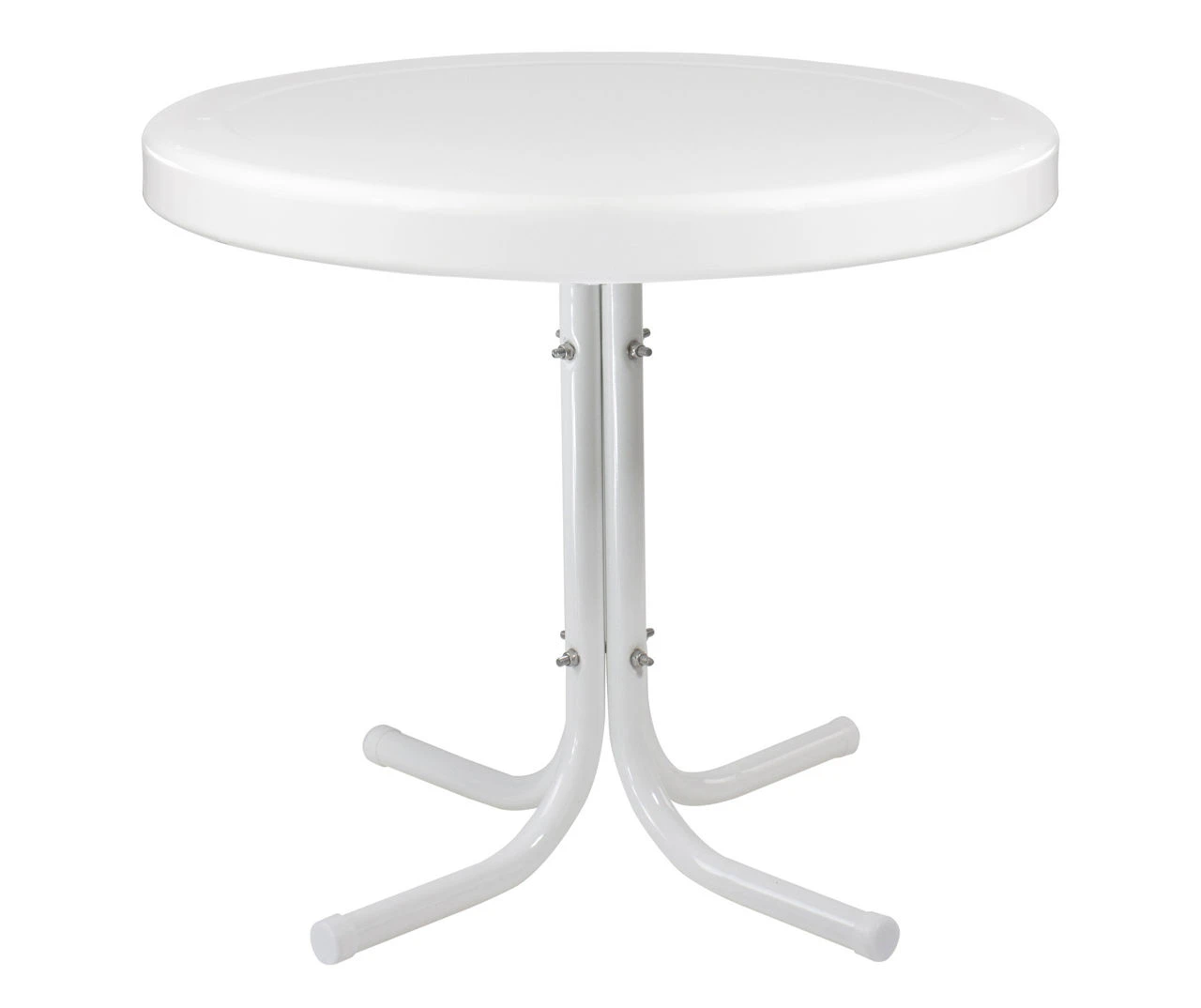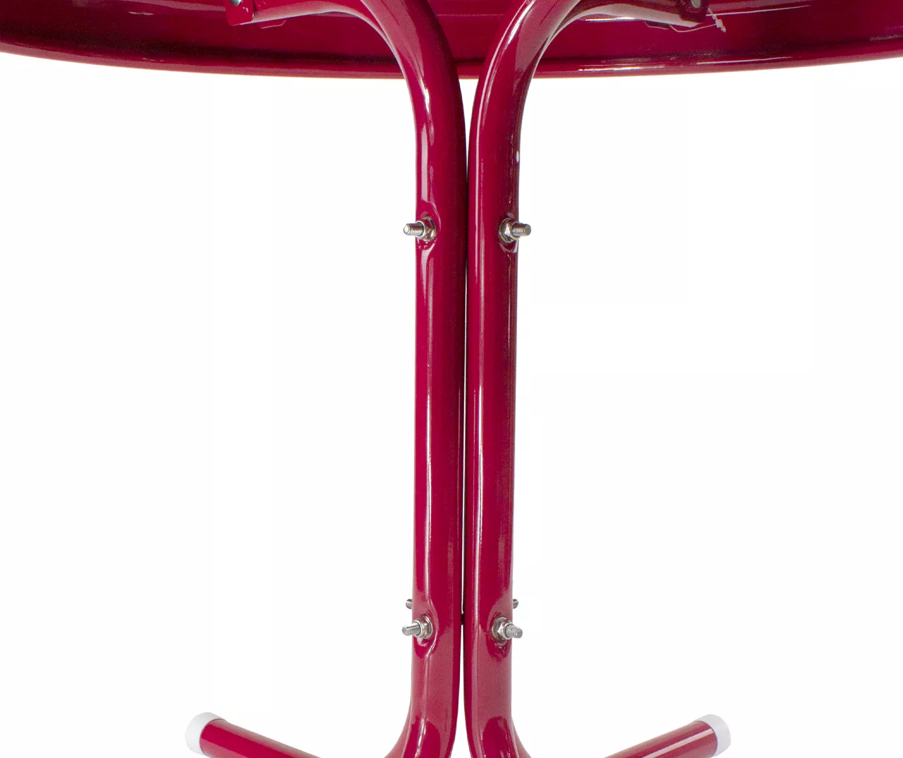 Keep drinks and items nearby in retro style using this outdoor side table! The long-lasting enamel paint and finish allow for many years of great usage without the worry of the table rusting or peeling. Adds the perfect pop of your color to your yard.